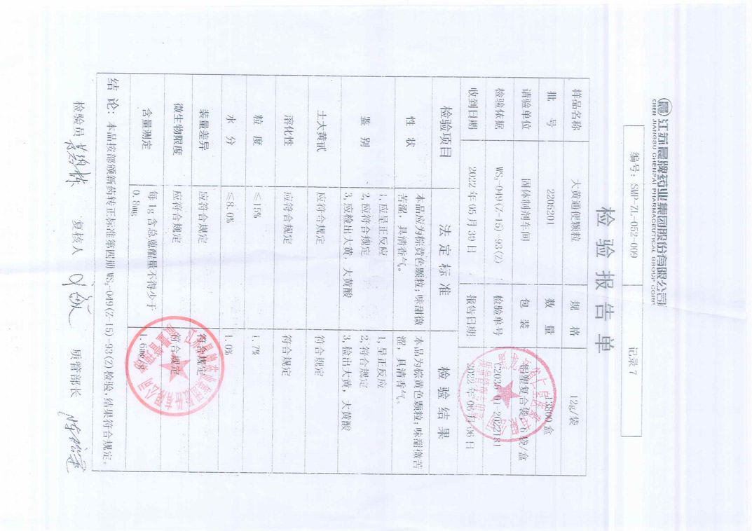 大黄通便颗粒2205
