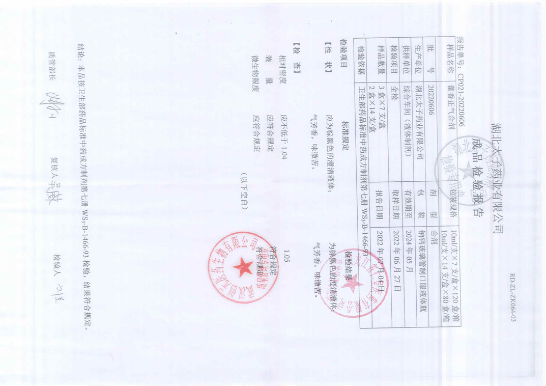 藿香正气合剂2022
