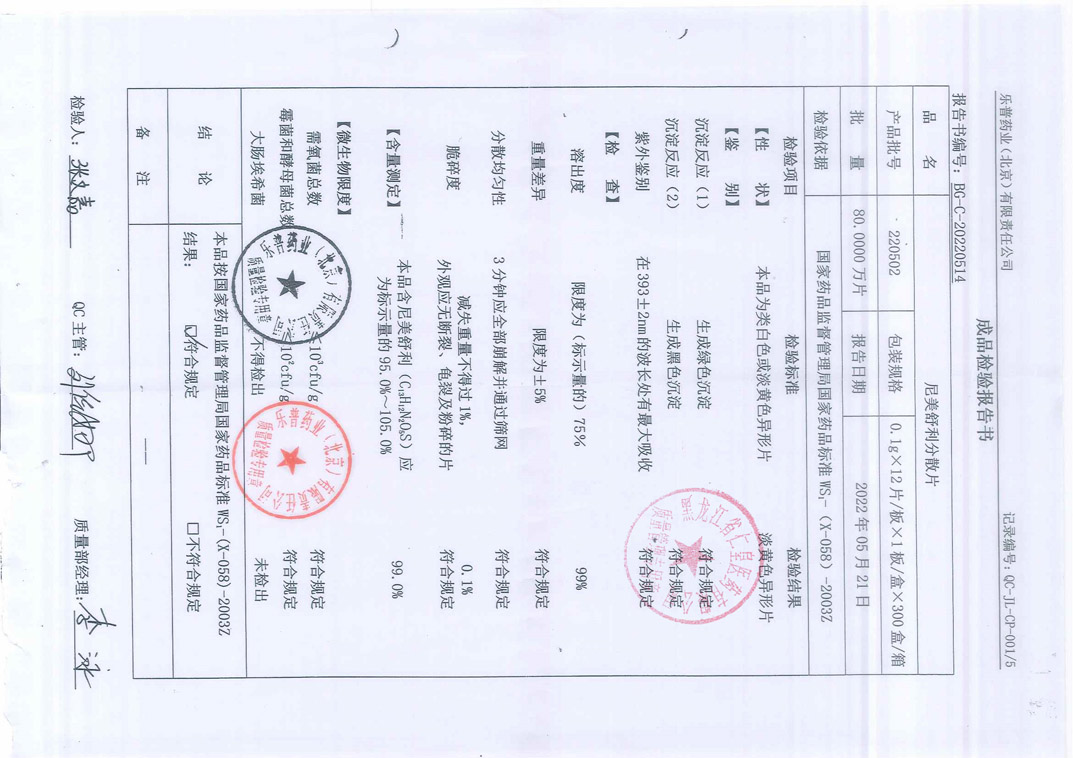 尼美舒利分散片220