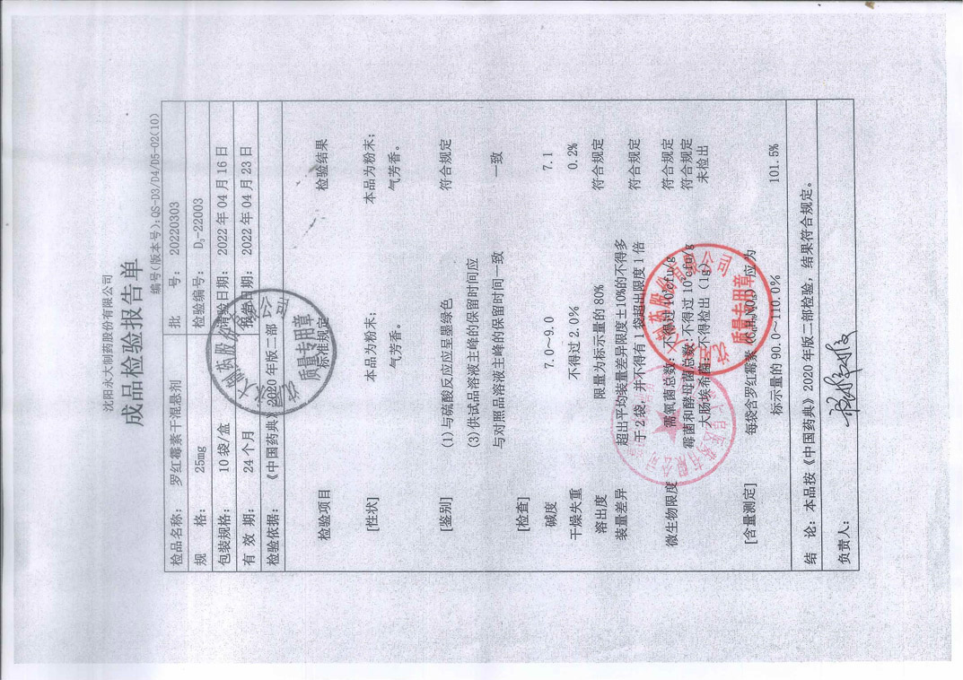 罗红霉素干混悬剂20