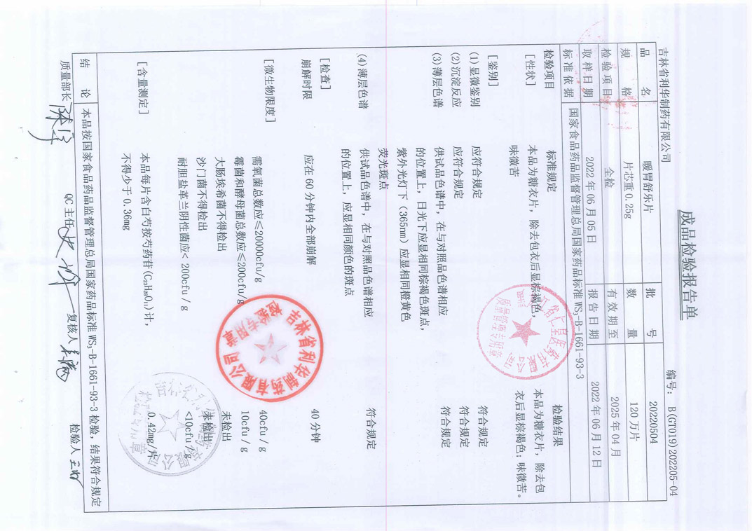 暖胃舒乐片20220