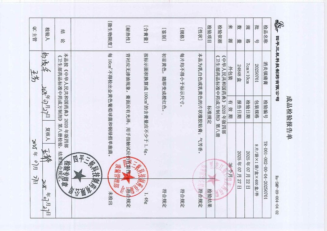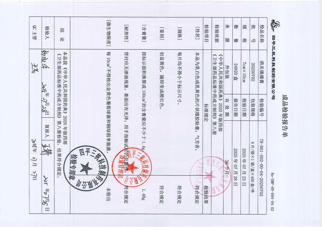 消炎镇痛膏20250