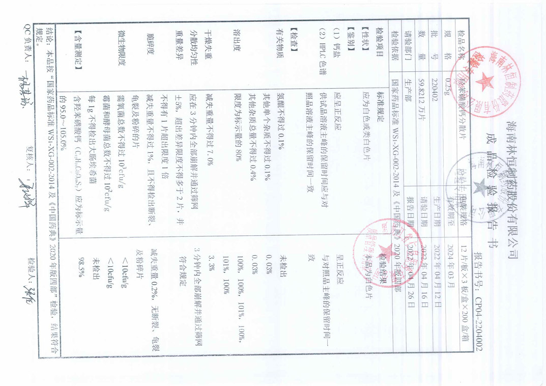 羟苯磺酸钙分散片22