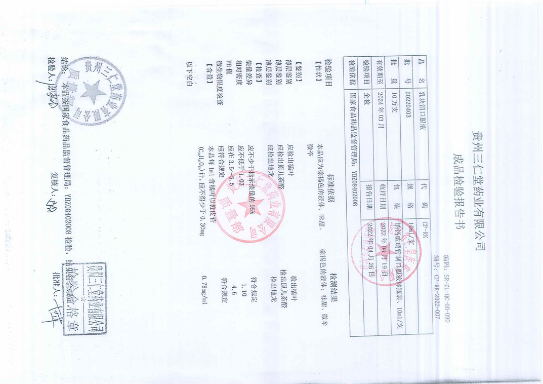 乳块消口服液2022