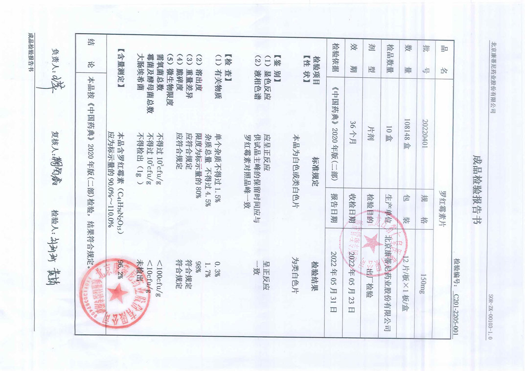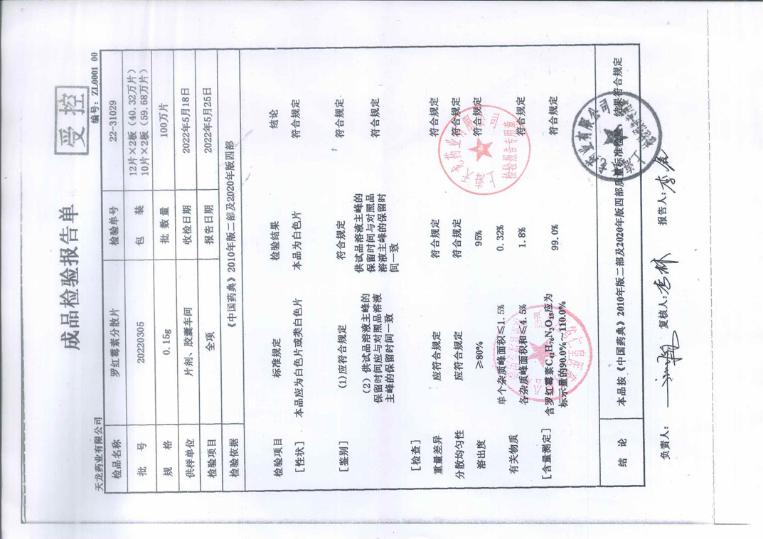 罗红霉素片20220