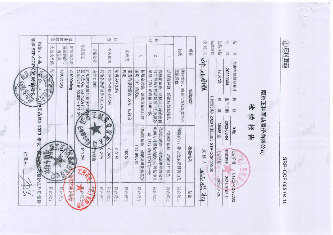 盐酸左氧氟沙星片20