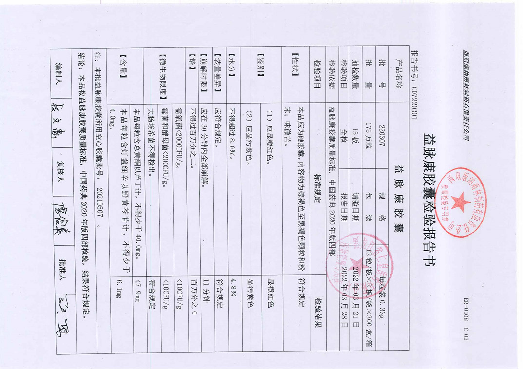 益脉康胶囊22030