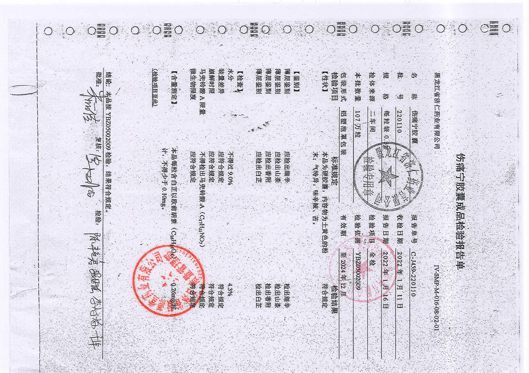 伤痛宁胶囊22011