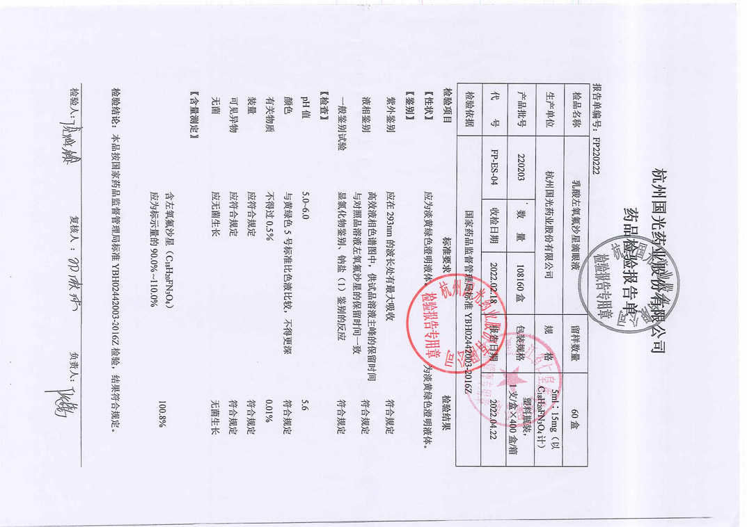 乳酸左氧氟沙星滴眼液