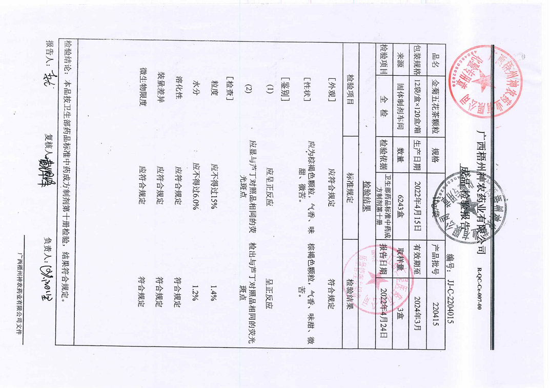 金菊五花茶颗粒220