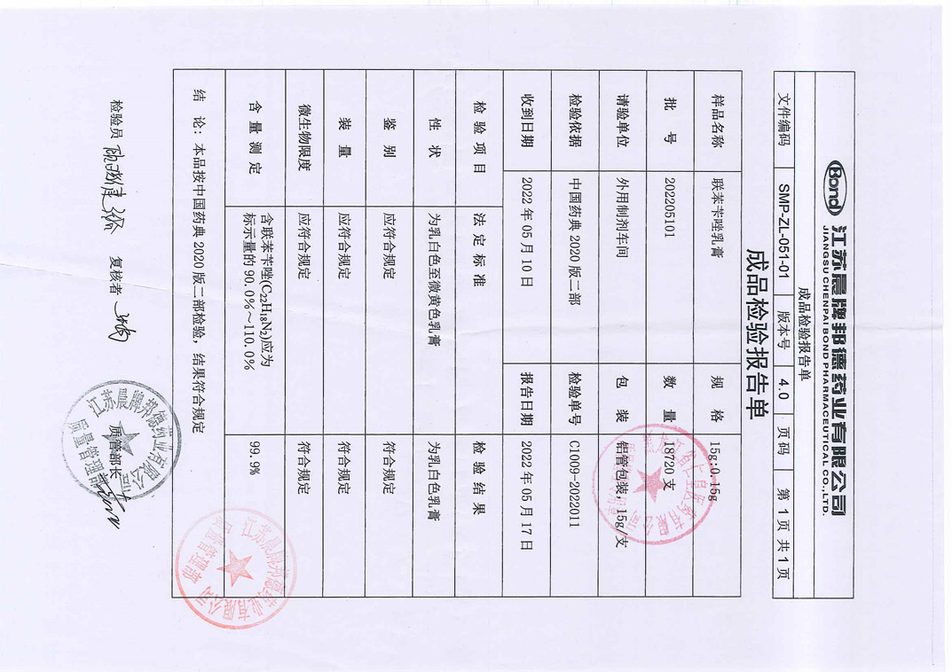 联苯苄唑乳膏2022