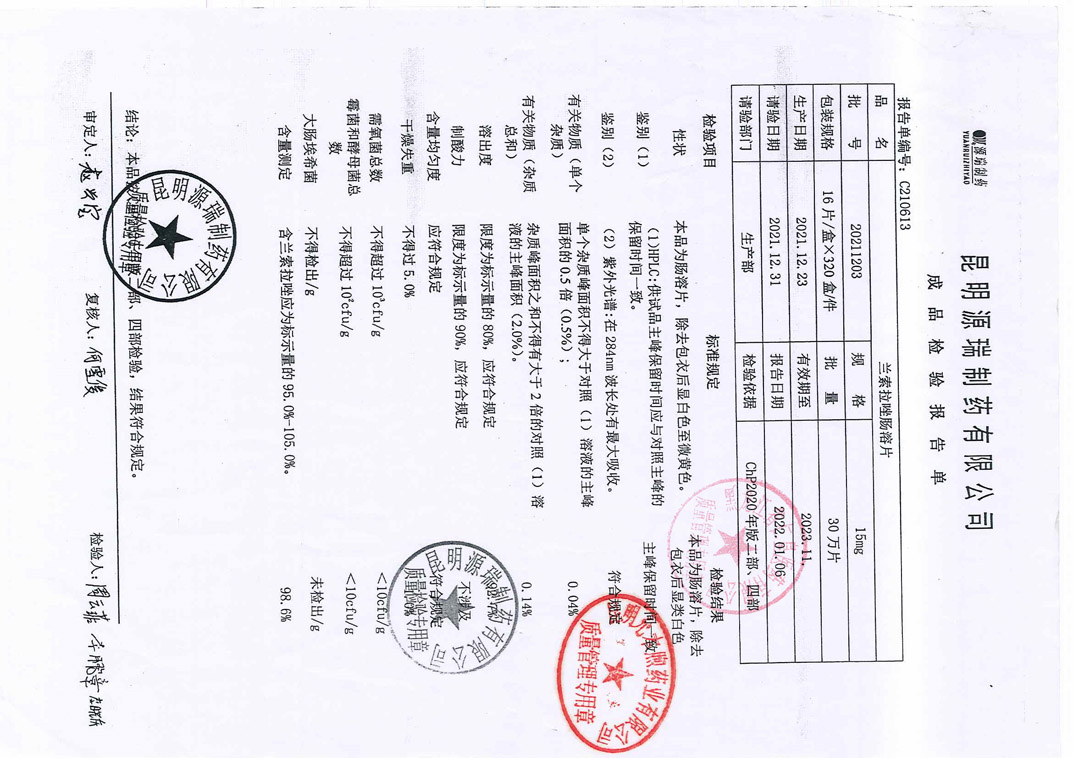 兰索拉唑肠溶片202