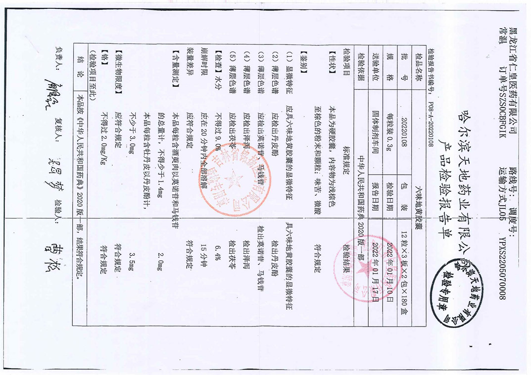 六味地黄胶囊2022