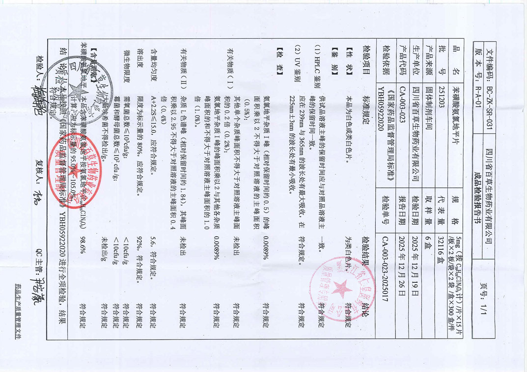 苯磺酸氨氯地平片26