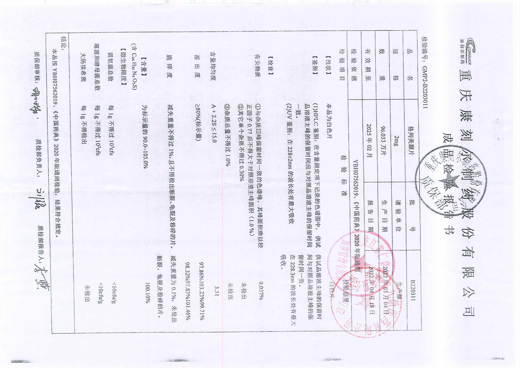 格列美脲片B2203