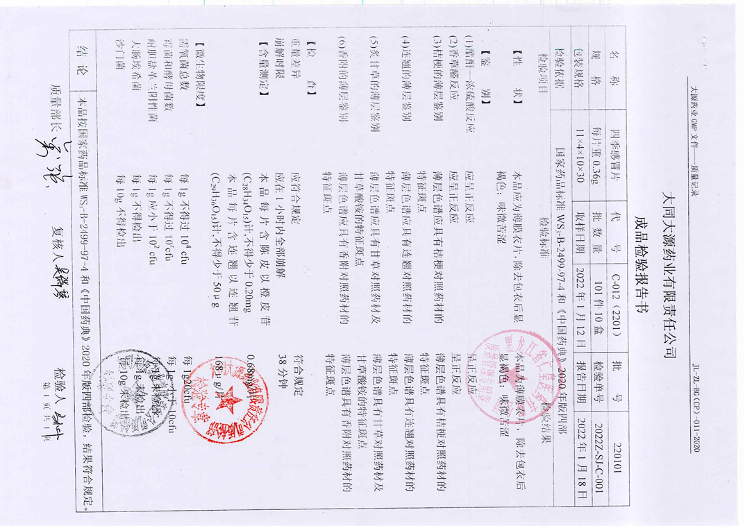 四季感冒片22010