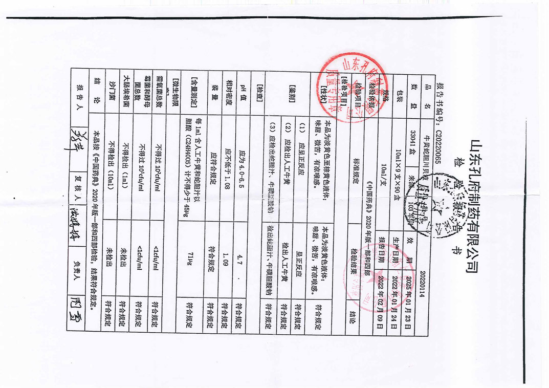 牛黄蛇胆川贝液202