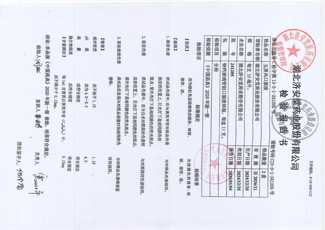 玉屏风口服液2412