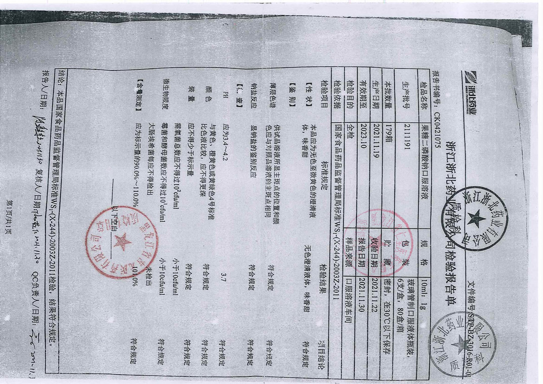 果糖二磷酸钠口服溶液