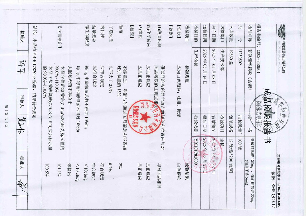 赖氨葡锌颗粒H250