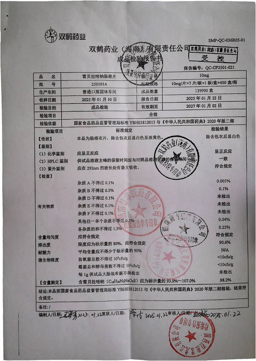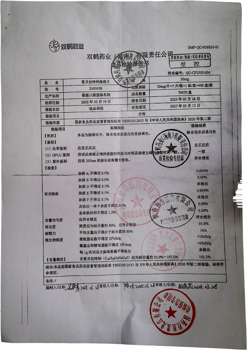 雷贝拉唑钠肠溶片25