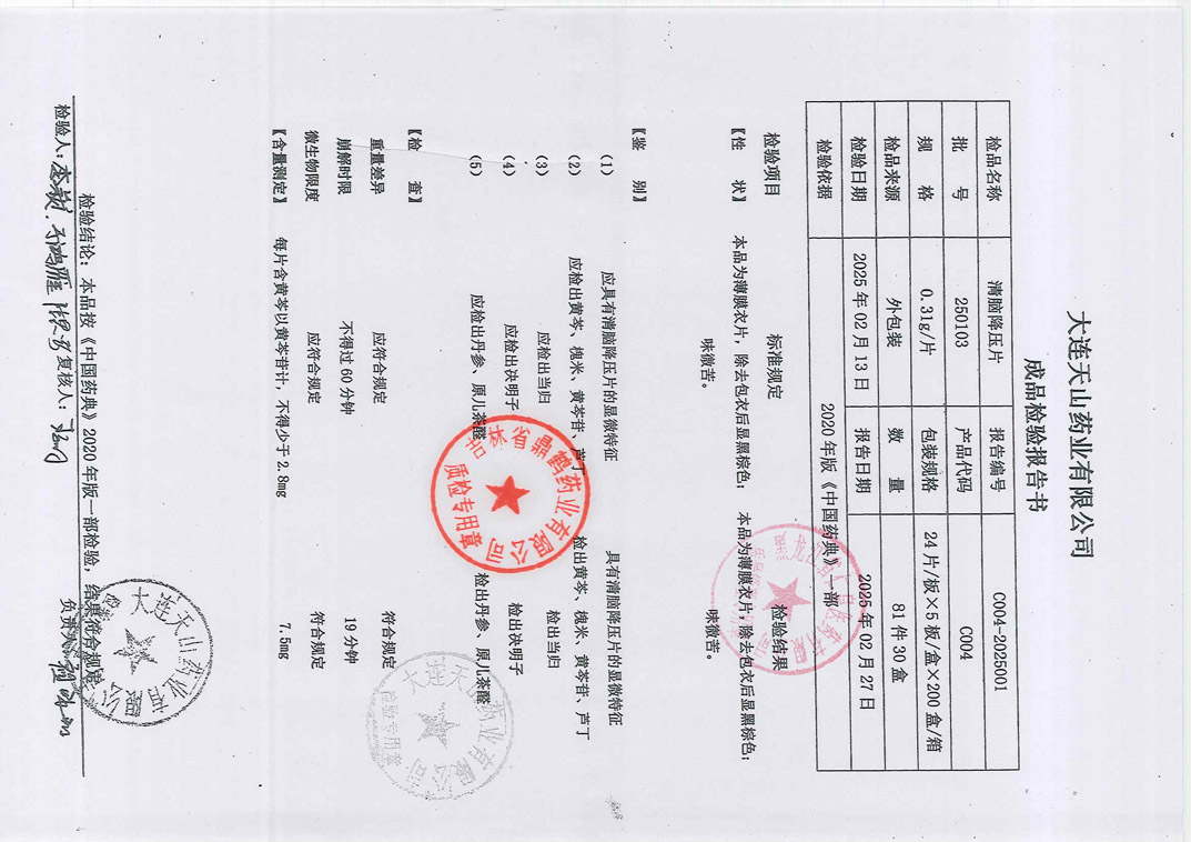 清脑降压片25010