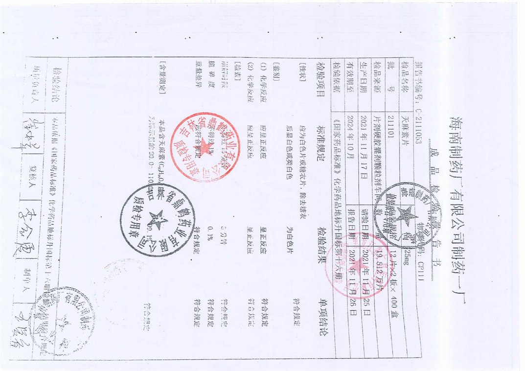 天麻素片211101