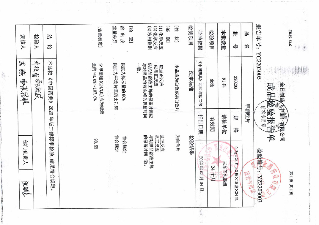 甲硝唑片220203