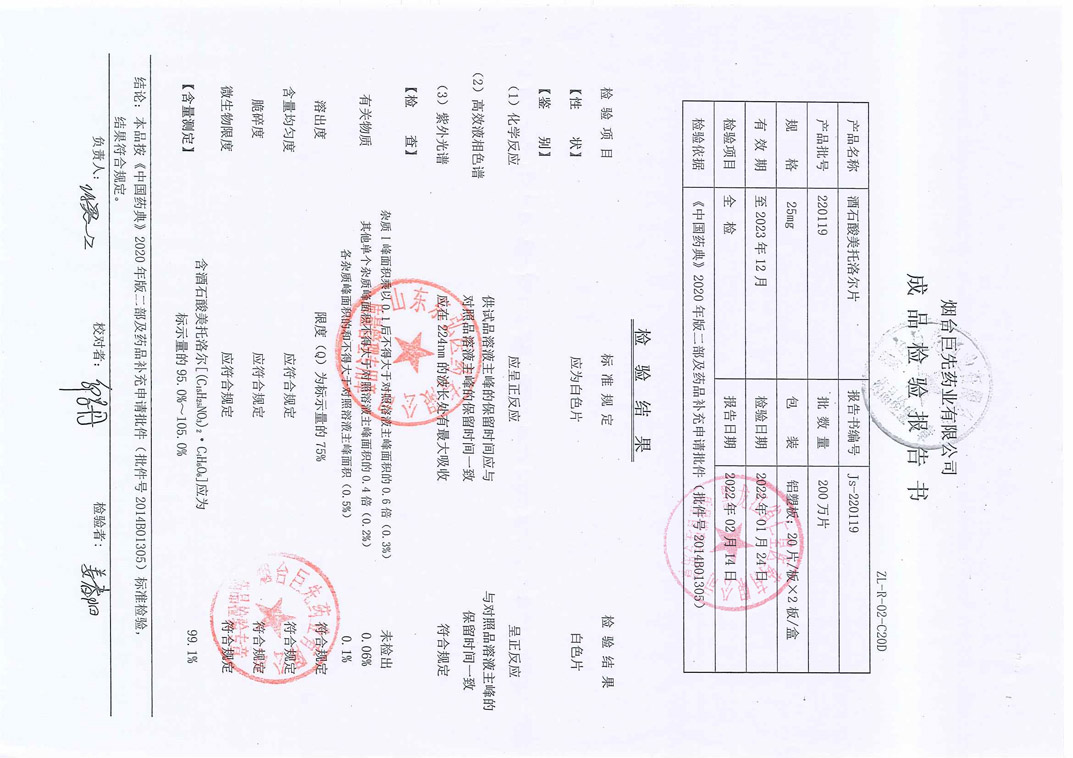 酒石酸美托洛尔片22