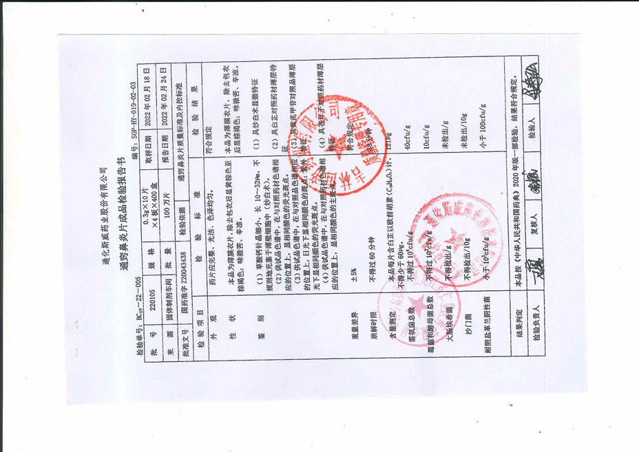 通窍鼻炎片22010