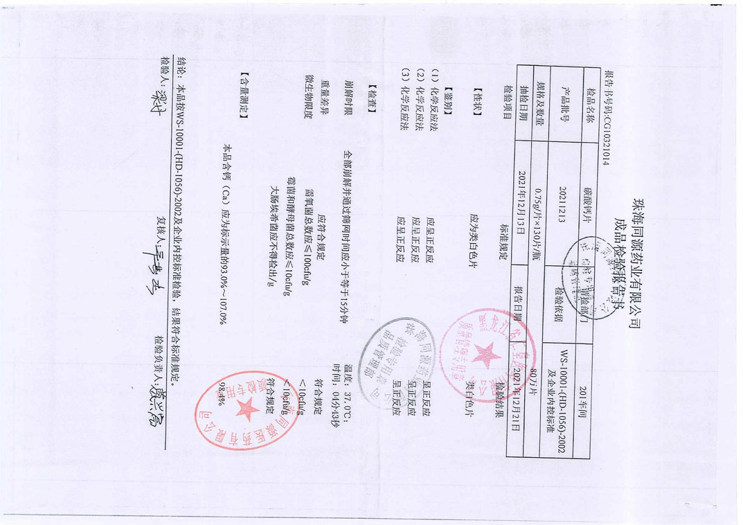 碳酸钙片202112