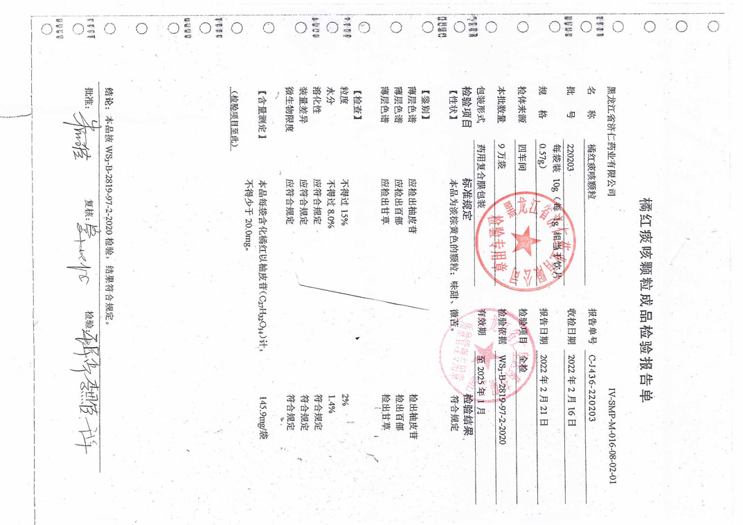 橘红痰咳颗粒2202