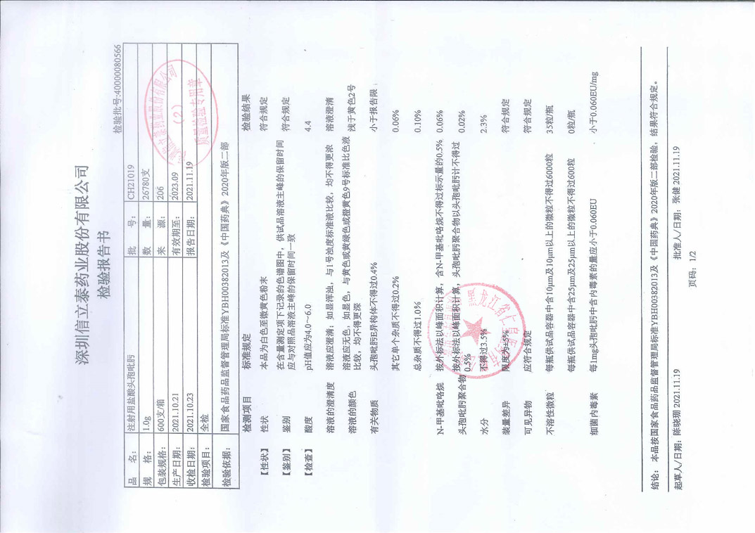 注射用盐酸头孢吡肟C