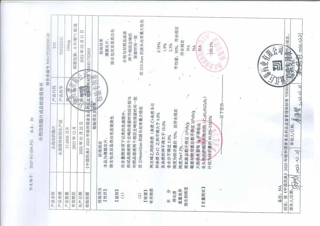 头孢泊肟酯片T052