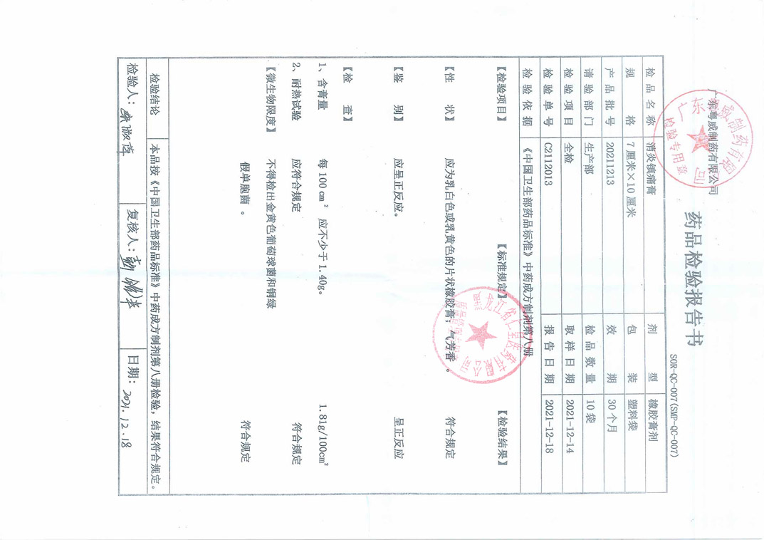 消炎镇痛膏20211