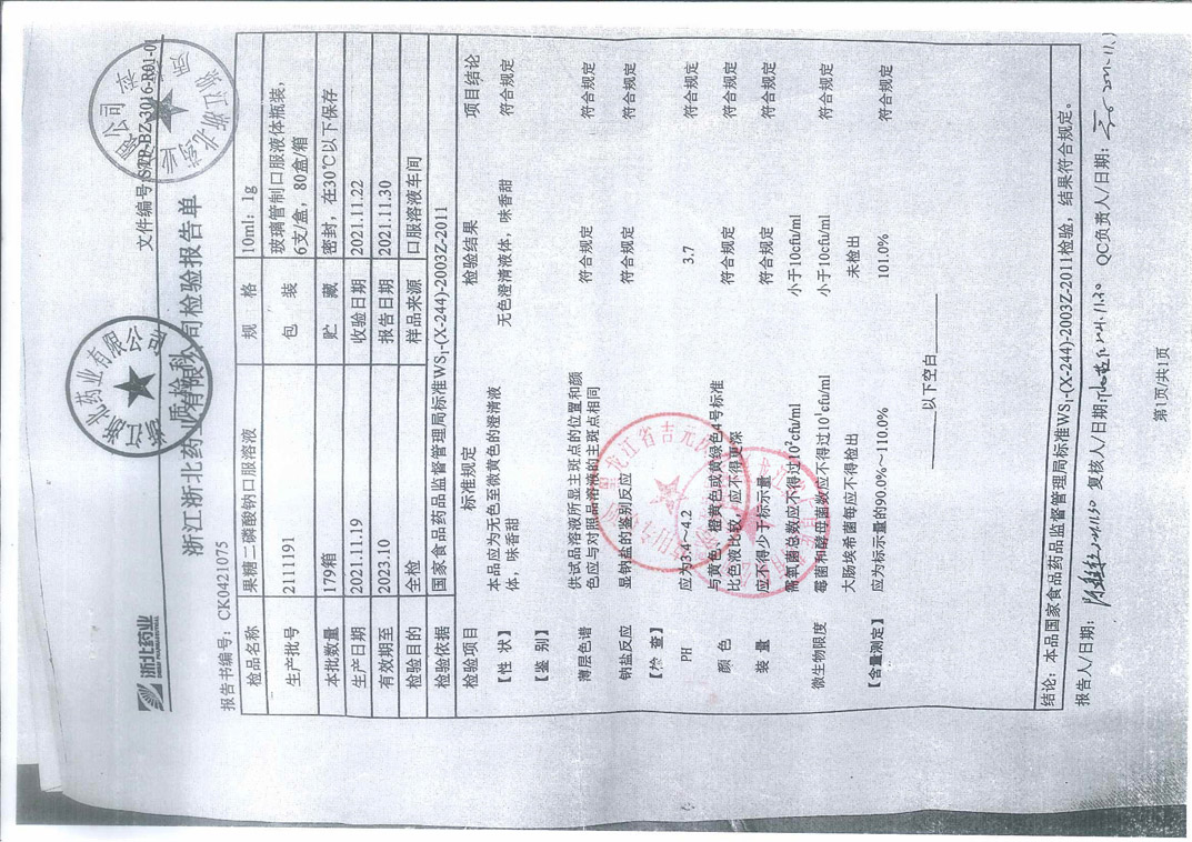 果糖二磷酸钠口服溶液