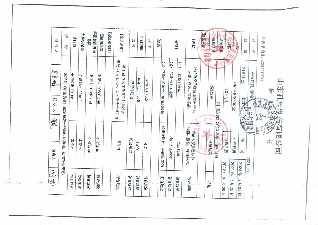 牛黄蛇胆川贝液202