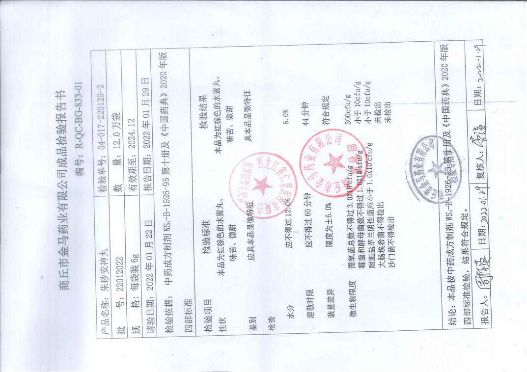 朱砂安神丸22012