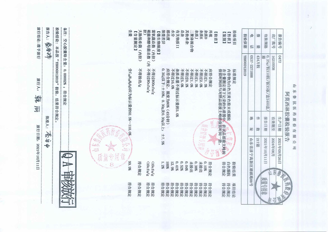 阿莫西林胶囊1621