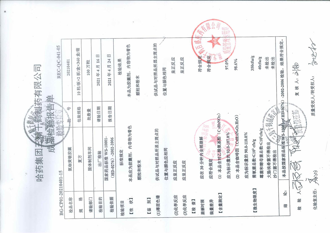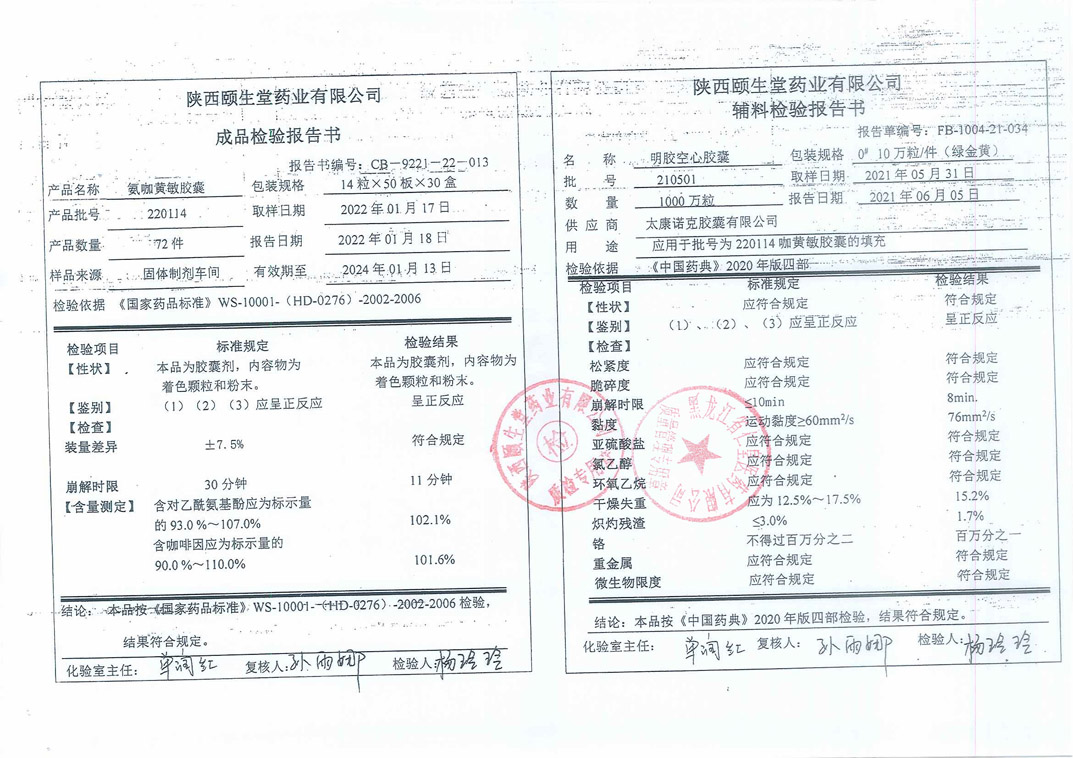 氨咖黄敏胶囊2021