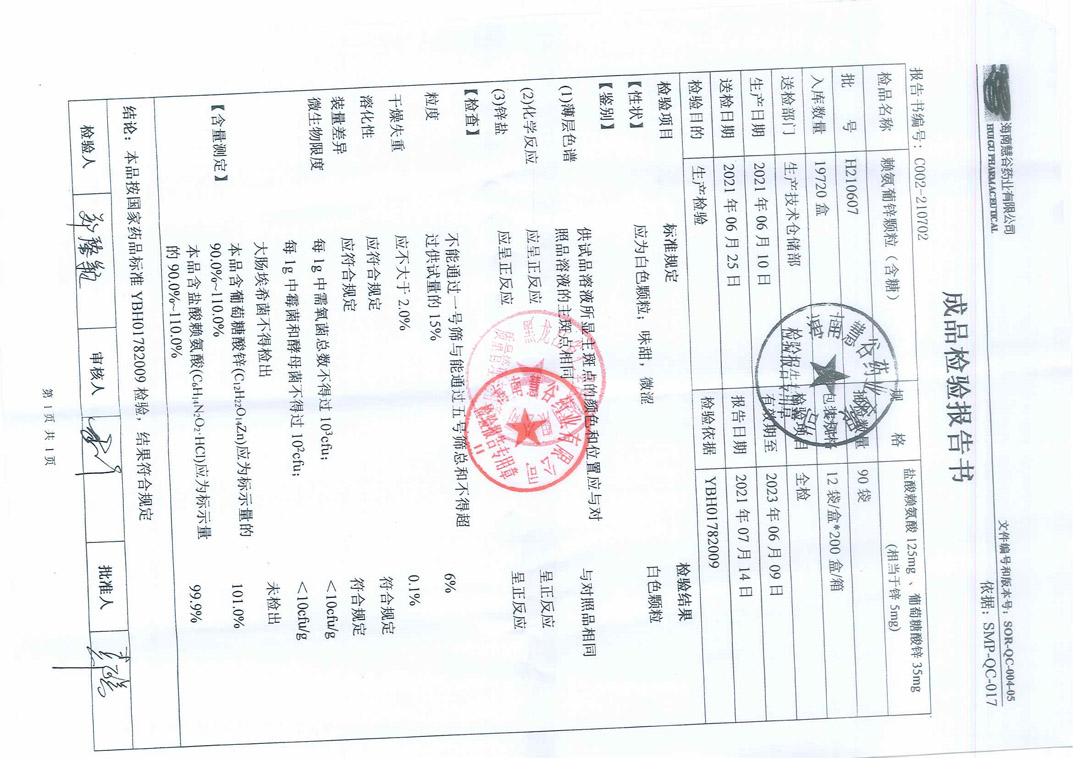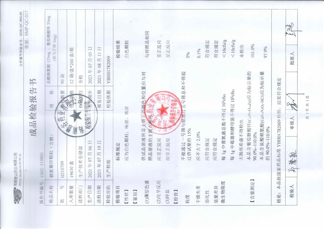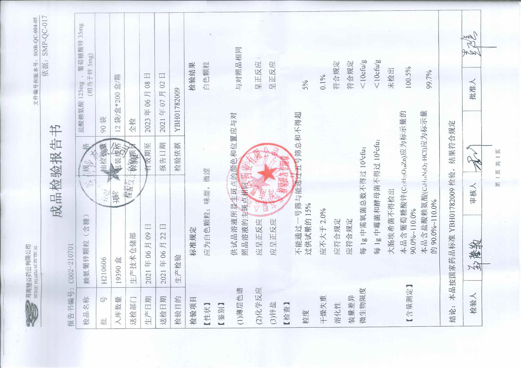 赖氨葡锌颗粒H210