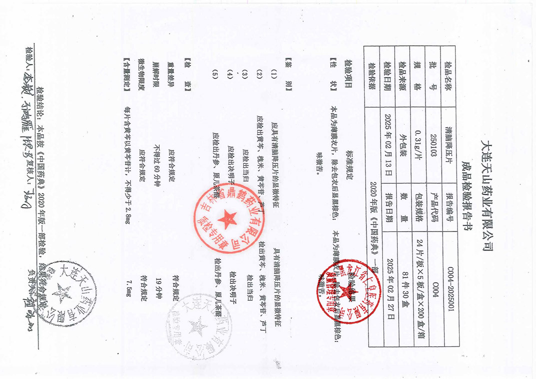 清脑降压片25010