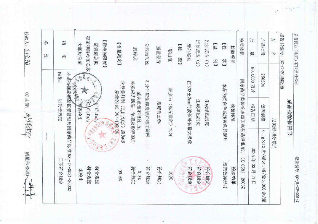 尼美舒利分散片250
