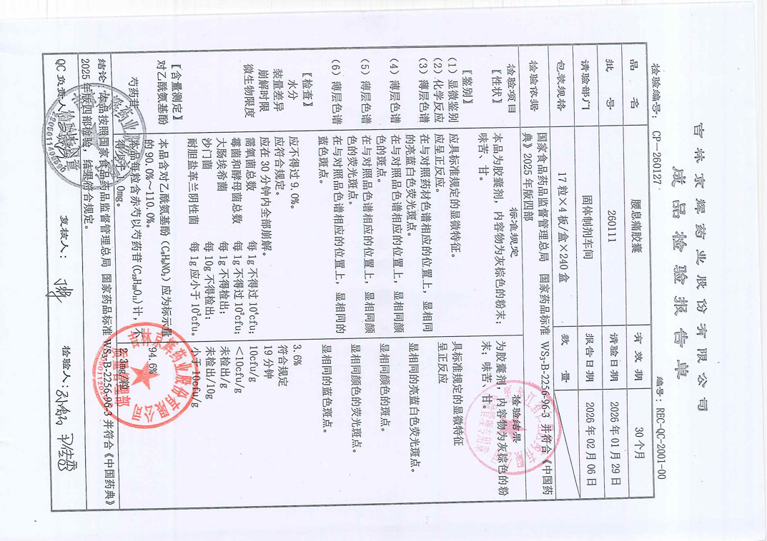 氨咖黄敏胶囊2601
