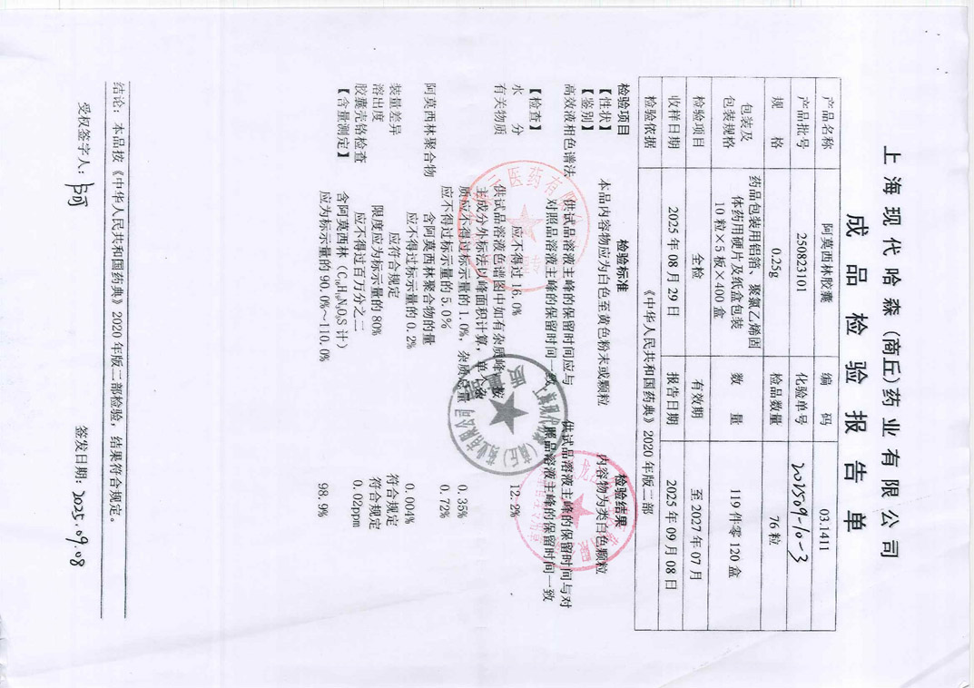 阿莫西林胶囊2508