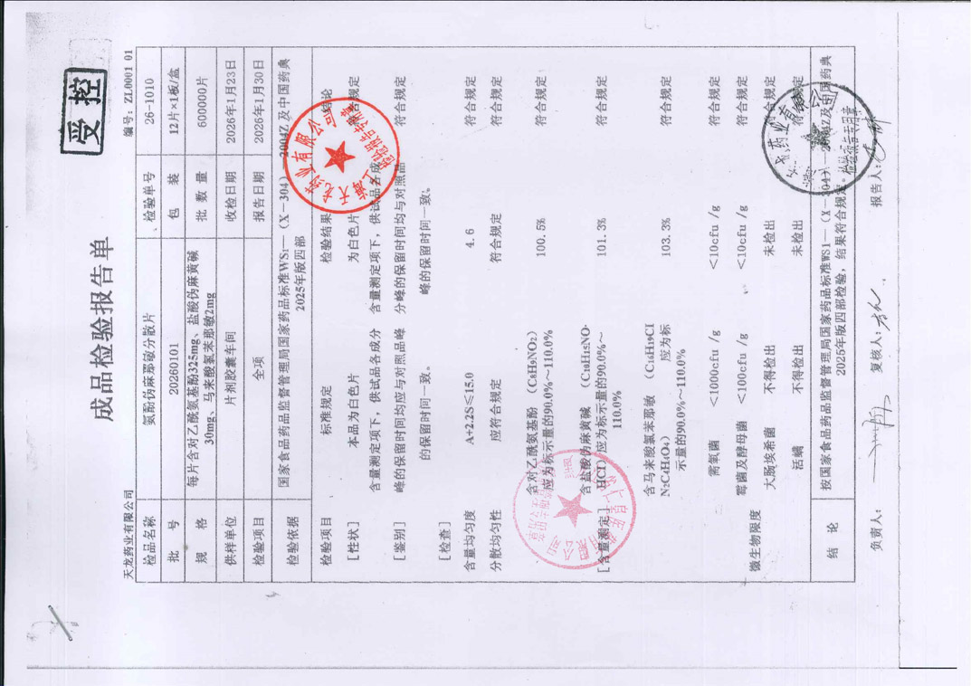 氨酚伪麻那敏分散片2