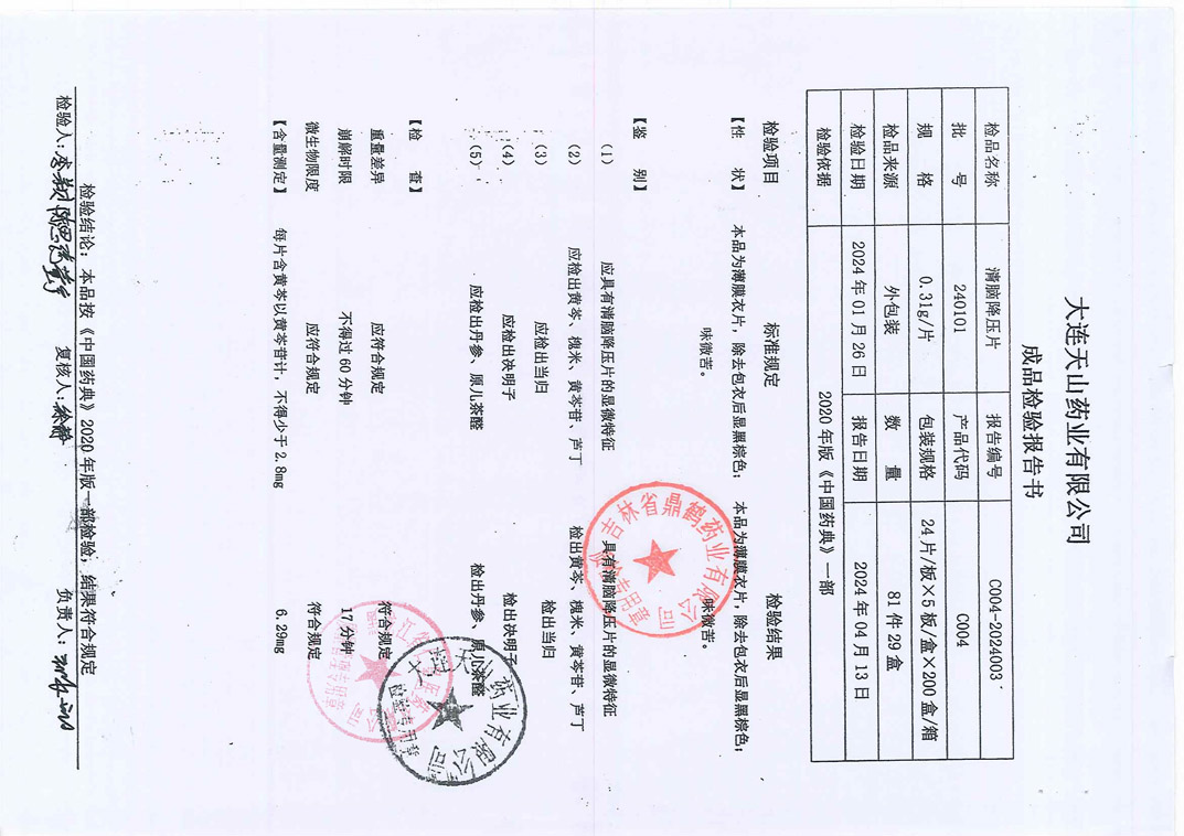 清脑降压片24010