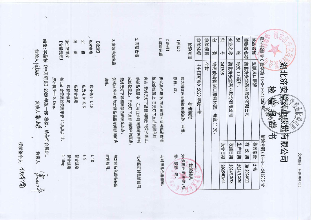 玉屏风口服液2412