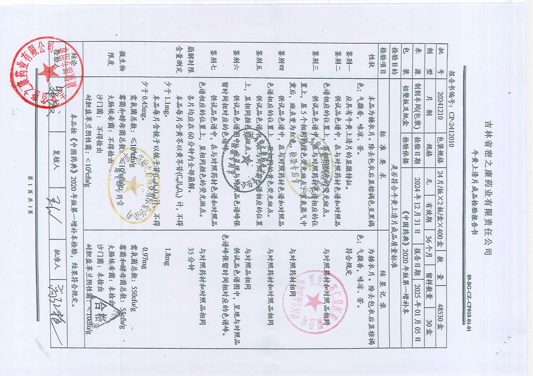 牛黄上清片20241