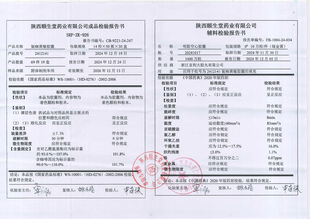 氨咖黄敏胶囊2412